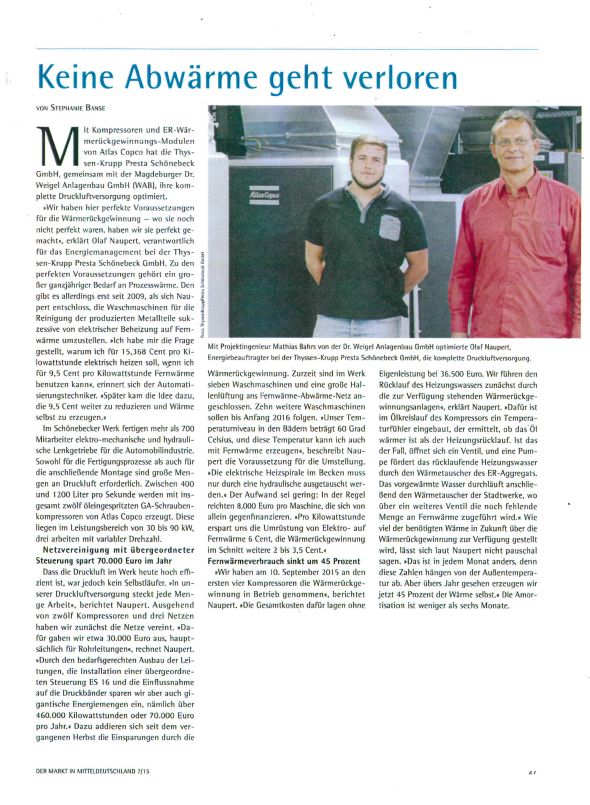 Dr. Weigel Anlagenbau ist auf der weltgrößten Industriemesse, der Hannovermesse, am Stand von Atlas Copco vertreten.